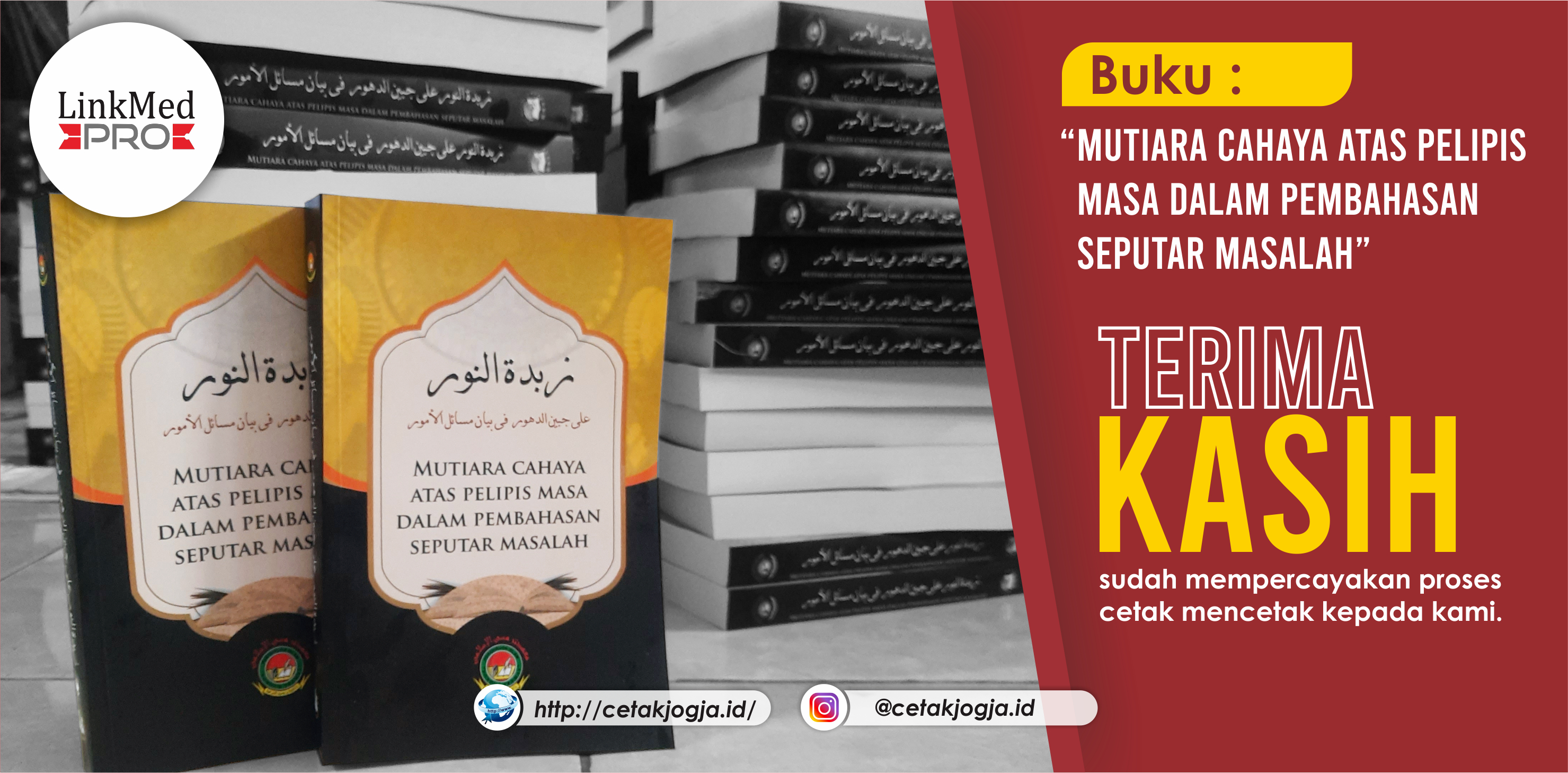 Kami ucapkan terima kasih sudah mempercayakan kami dalam proses cetak mencetak buku anda ! Bagi kalian yang masih cari penerbit & percetakan buku langsung aja bisa kontak Whatssapp kami 0852 7357 5858 atau DM Instagram kami @cetakjogja.id kami pastikan kami akan memberikan kualitas terbaik bagi para konsumen LinkMed Pro !